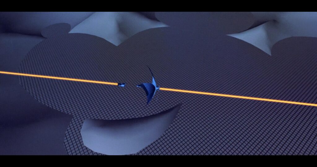 Detto fatto, i due scappano nel mondo reale per raggiungere la ENCOM entro 29 minuti, Athena li insegue sempre più agguerrita e rispettosa della direttiva impartitagli (recuperare il codice senza farsi fermare da alcun impedimento), stavolta armata del laser a particelle con l’obiettivo di ricatturare la Kim.